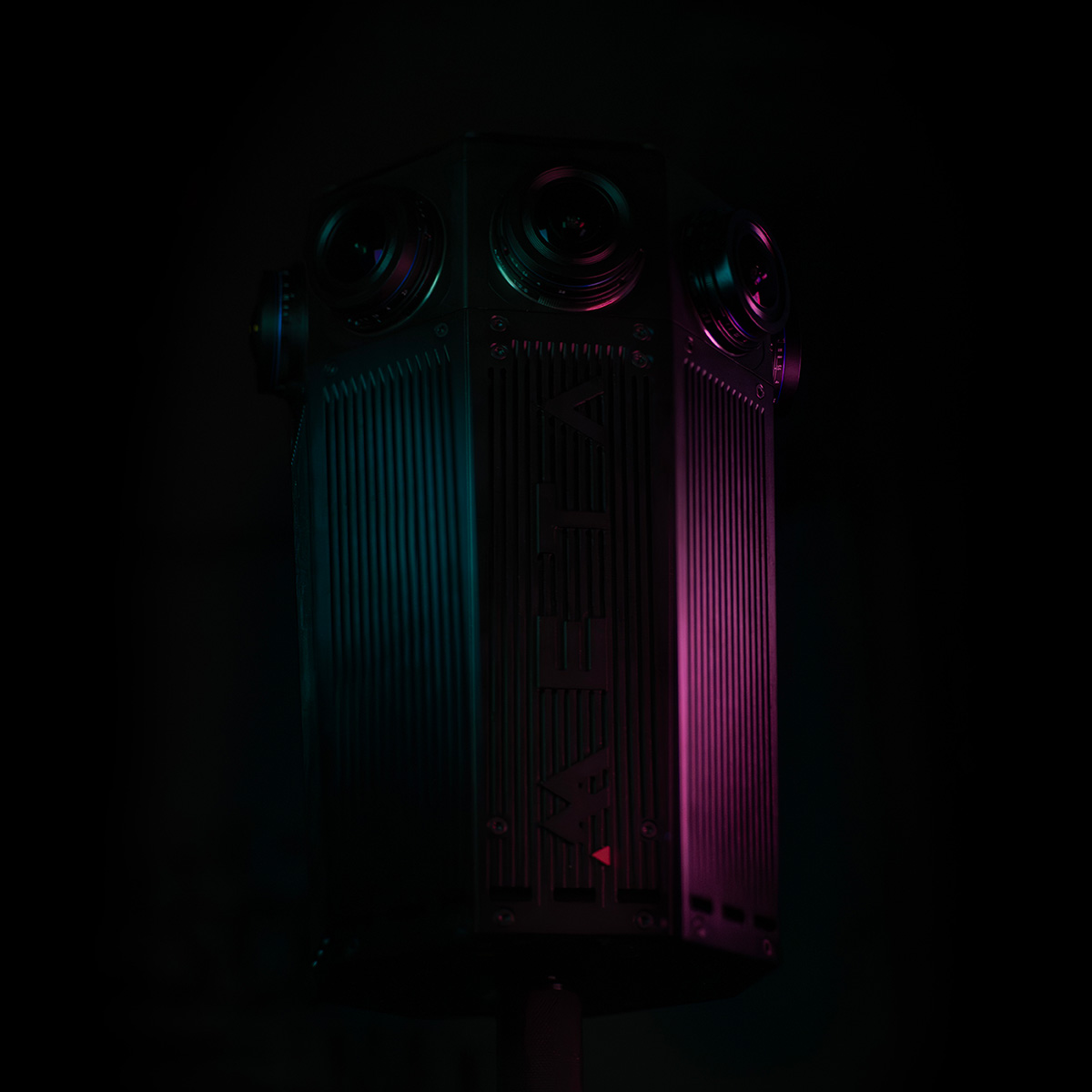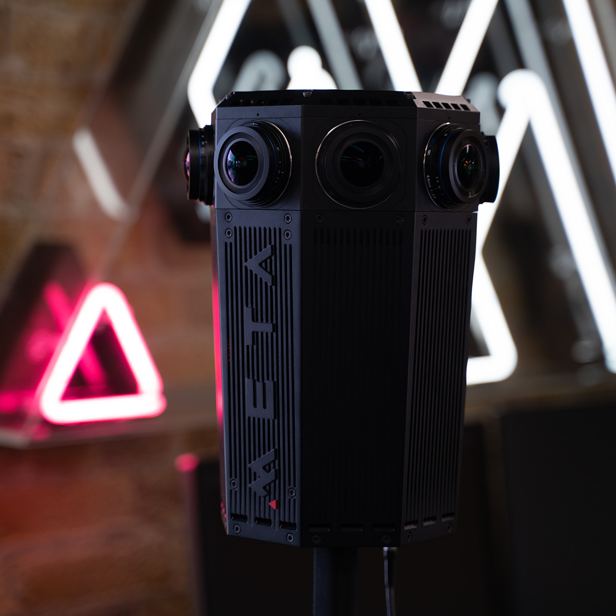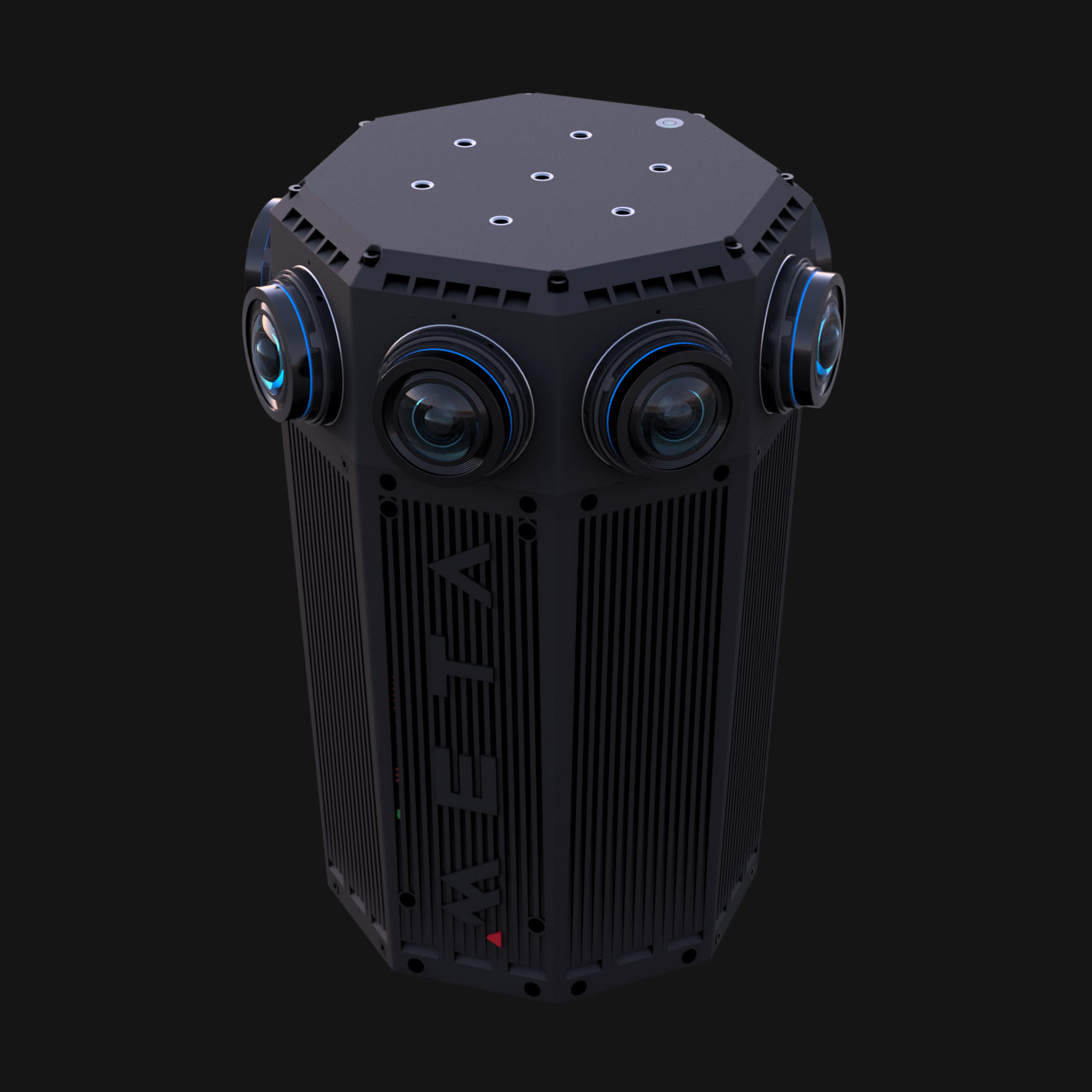 The META Four is a professional 360 camera with a resolution by default of 7K x 7K with an over under export of it's 3D content. The eight lenses have great overlap and cover the full 360 by 180 degree sphere.