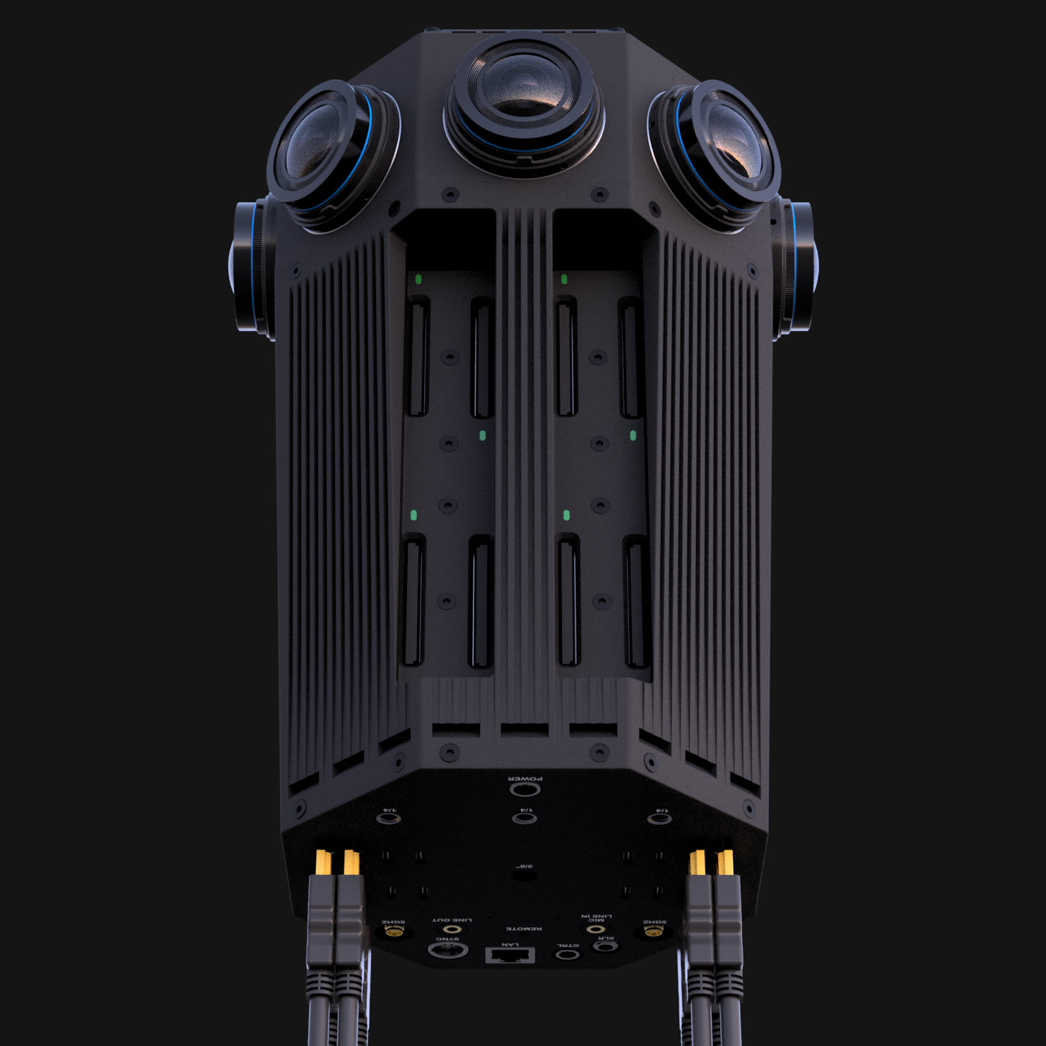 We can also supply the camera as a 10.5k x 10.5k 3D camera with a different set of lenses, this will though leave a small hole at the top of the 360 that can either be filled in post or you can buy the 'top-hat' camera and capture the full sphere.