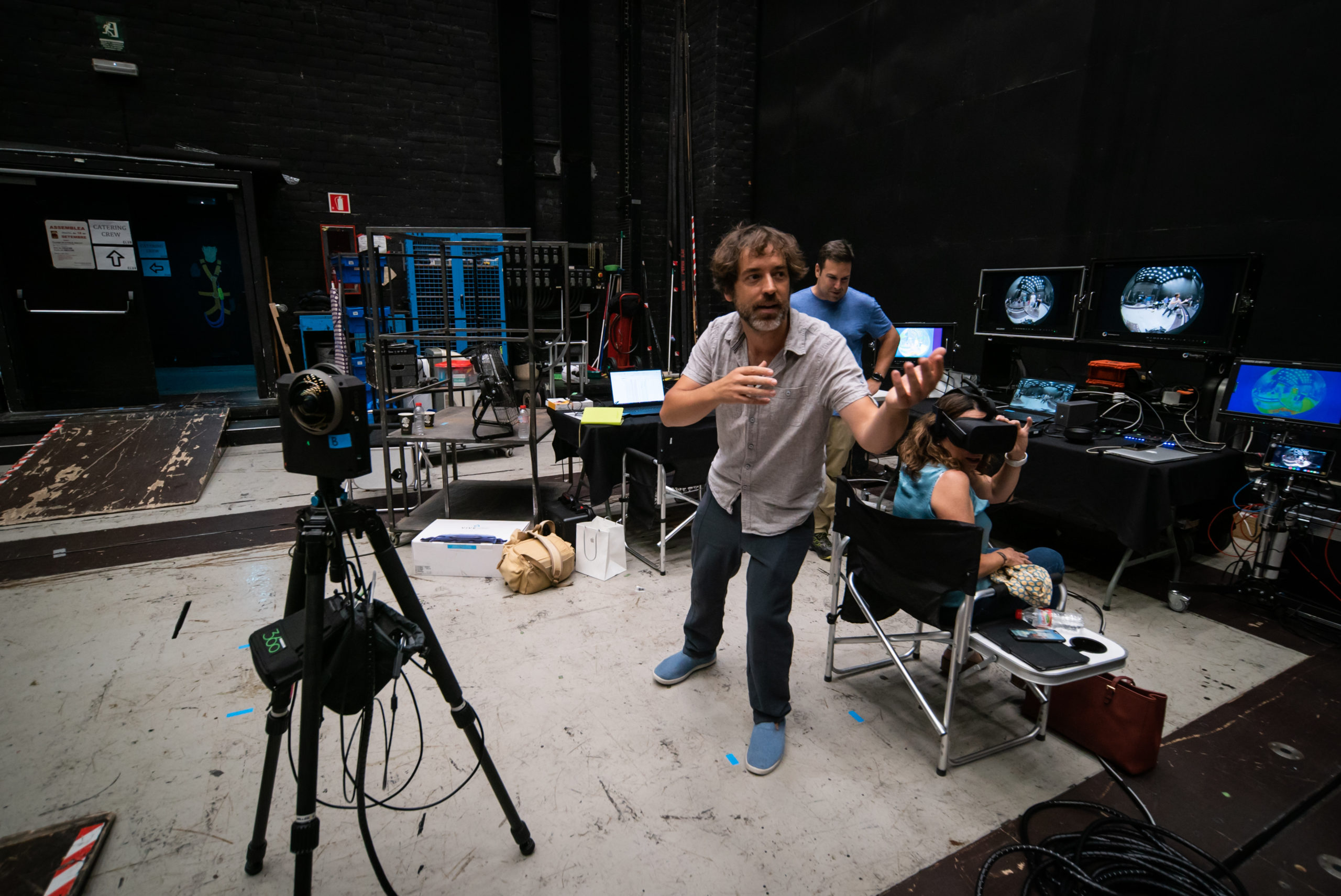 Using the Meta Camera's live 360 video stream we were able to be virtually present on set either via a virtual reality head set and on large monitors.